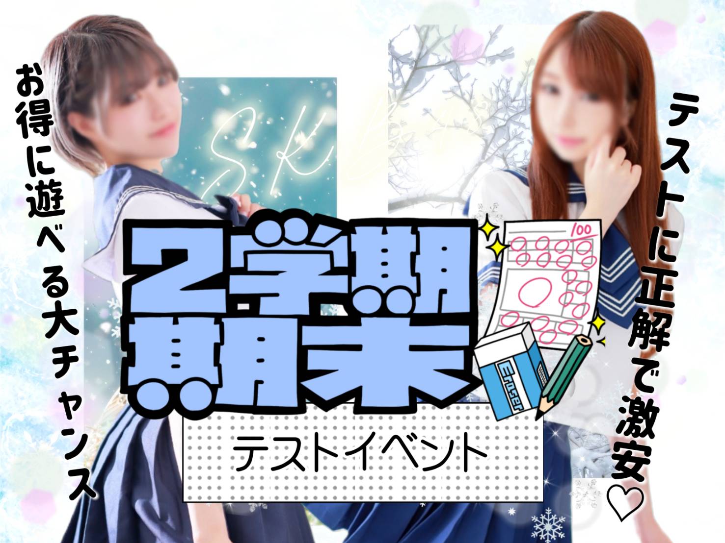 【簡単ななぞなぞに正解で超★激アツ割引⁉】期末テストEVENTで人気優等生とお得に遊べるチャンス♡